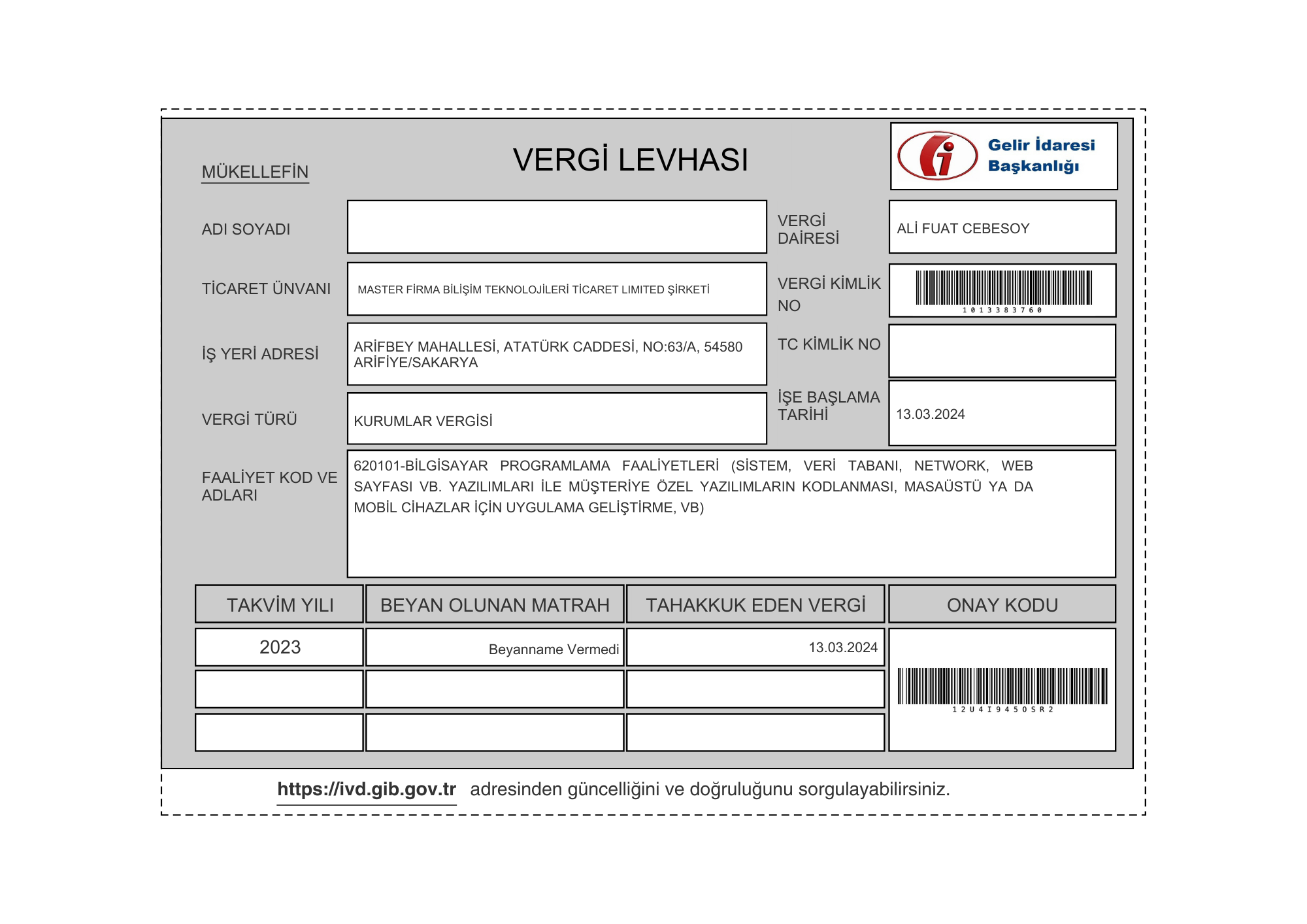 Vergi levhasını görüntüle / indir